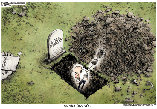 Yeah, right. So’s a cemetery peaceful. In other words: “Ignore the picture above and the accompanying descriptions. Move along folks, nothing to be concered about. Watch the ChiCom Olympics. Nothing happening here. The Soviet Union Russia is a peace-loving nation, quietly maintaining its sovereignty over a formerly Soviet land. I mean, wasn’t everything peaceful back in the USSR? Da! It’s that pesky independence that Georgia seems to think is important that’s the problem. Nyet?